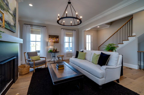 The Camden was J&K's show home in the 2021 Dayton Homearama show in the Union Village community in Lebanon. This Carolina-inspired home offers something for everyone. The rich, gray exterior paint coupled with the black windows and white trim create a quaintness that is timeless. Multiple porches encourage entertaining and hours of time spent outdoors. Additional living space is available over the garage, complete with a private stair entrance and space for a future elevator as needed. This home offers 3,328 sq ft (plus an additional 715 finished sq ft in lower level). The design partner on this home show project was Kimberly Fox Designs.